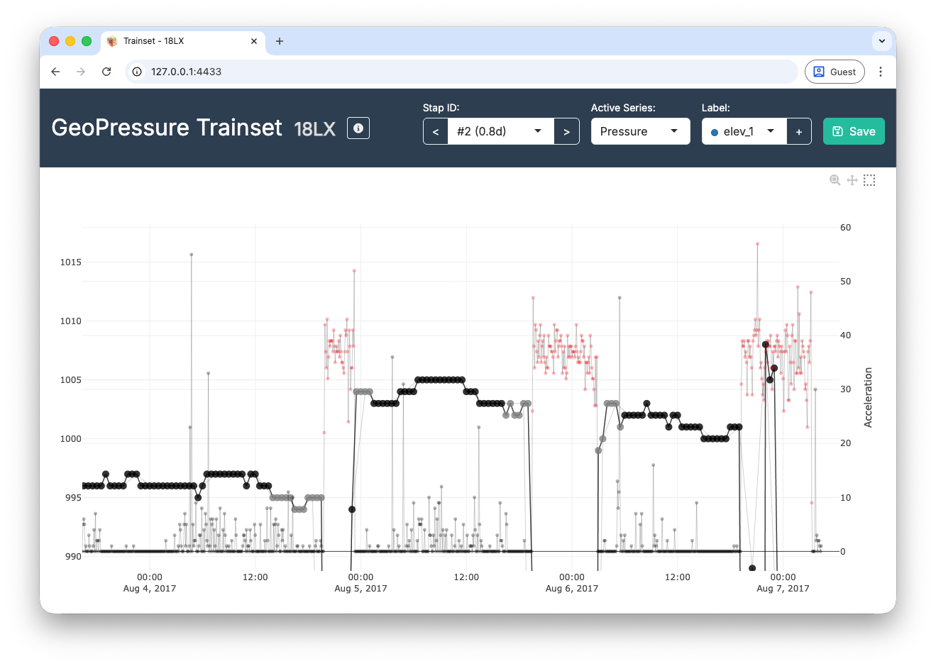 At this stage, the label file should be good enough to start estimating the position of the bird. This will be super helpful to then compare the pressure measurements to the ERA5 pressure and refine the labelling. To help in this process, we’ll be using GeoPressureViz.