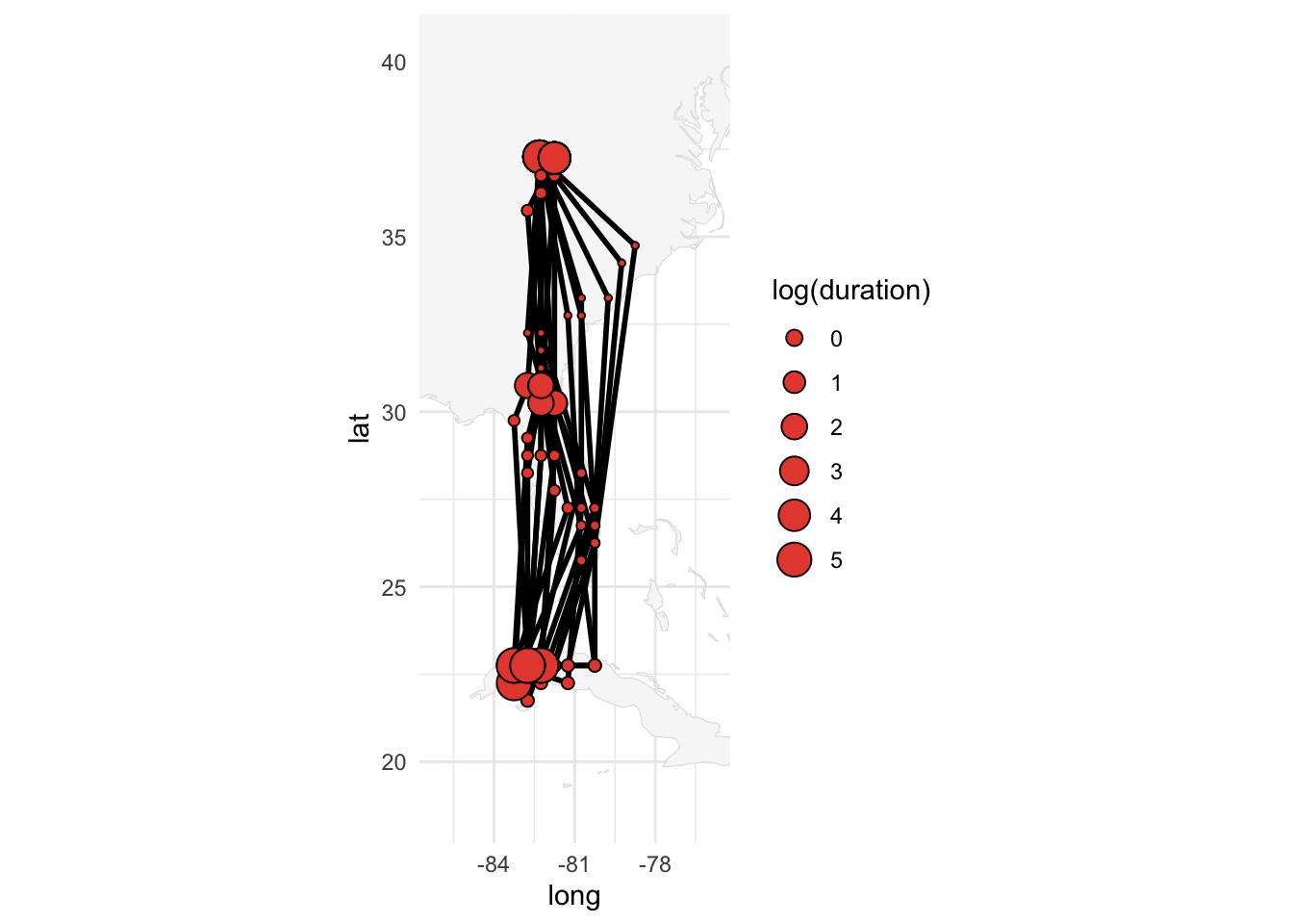 You can think of the nodes as a full 3D grid of lat x lon x stationary period and the edges as all possible pairs of nodes between two consecutive stationary periods. As you can imagine, this results in a very high number of edges! The novelty of Nussbaumer et al. (2023) is to construct this graph using only the useful nodes and edges, thereby dramatically reducing the computational resources required.